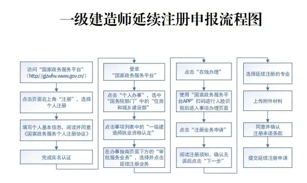 日前,住房和城乡建设部印发《住房和城乡建设部办公厅关于在部分地区启用一级建造师电子注册证书的通知》(建办市〔2021〕25号),要求自今年8月1日开始,在河北、黑龙江、江苏、安徽、福建、江西、山东、河南、广东、重庆、四川、云南、陕西、青海、新疆等15省(区、市)启用一级建造师电子注册证书,并开展延续注册(延续注册申报流程见附图)。