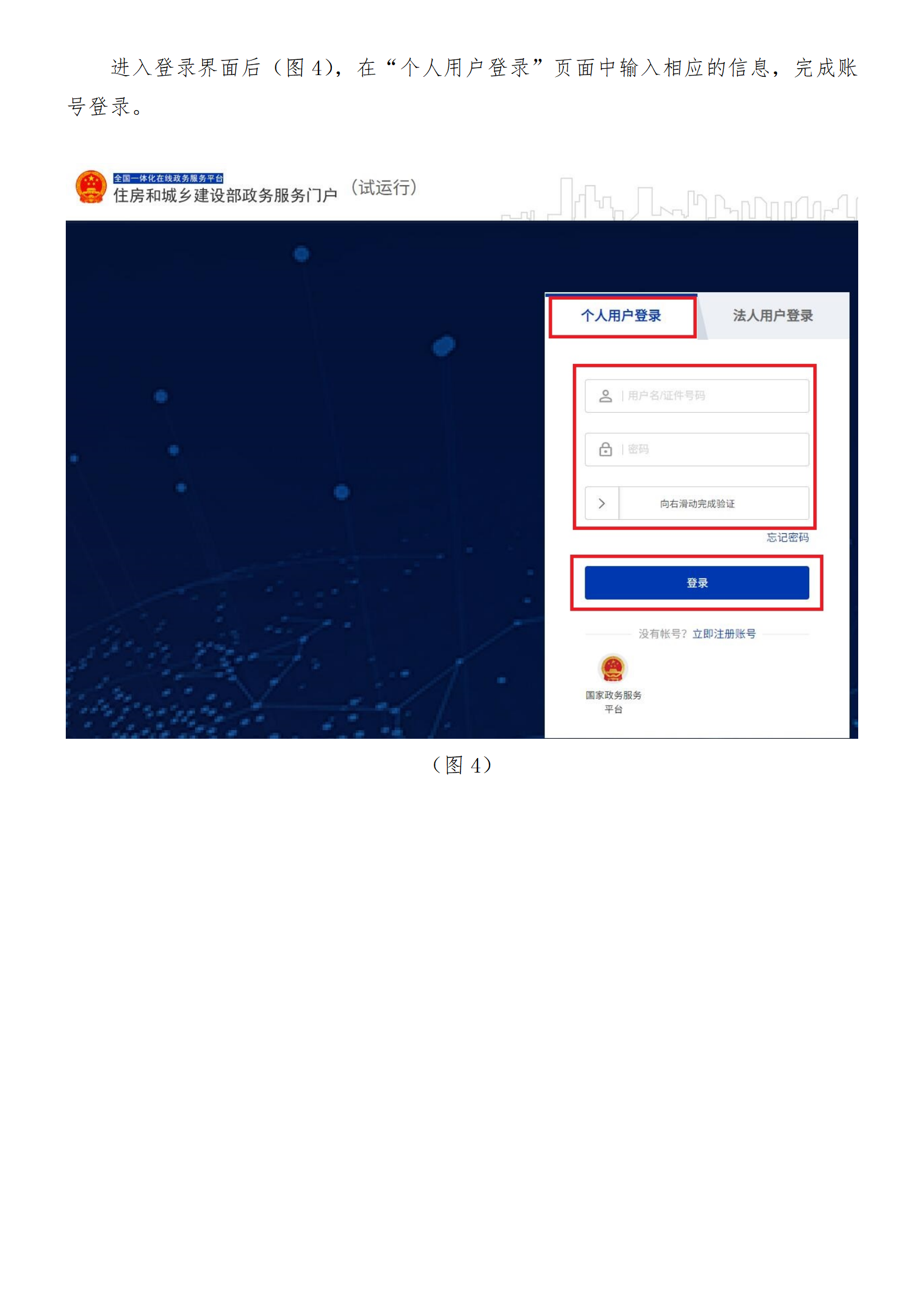 12月19日起,一级注册建筑师、勘察设计注册工程师、注册监理工程师、一级建造师个人注册申请及一级注册建筑师、勘察设计注册工程师聘用企业办事业务需通过住房和城乡建设部政务服务门户平台注册登陆。