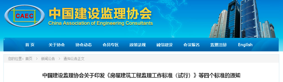 近日,中国建设监理协会印发《房屋建筑工程监理工作标准(试行)》等四个标准。